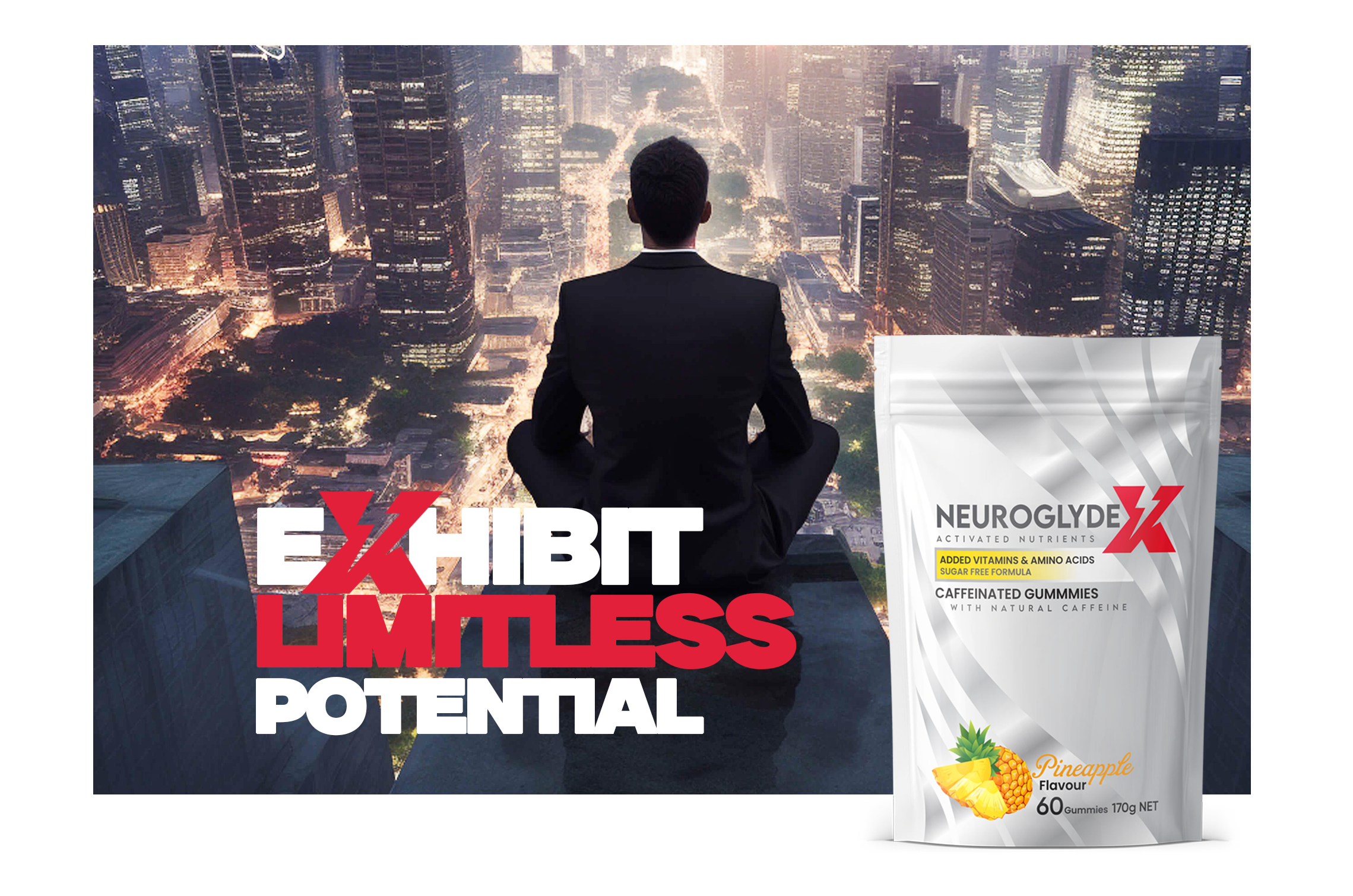 NeuroGlydeX delivers clean, modern energy with activated vitamins and balanced stimulation for focus, drive and everyday performance.