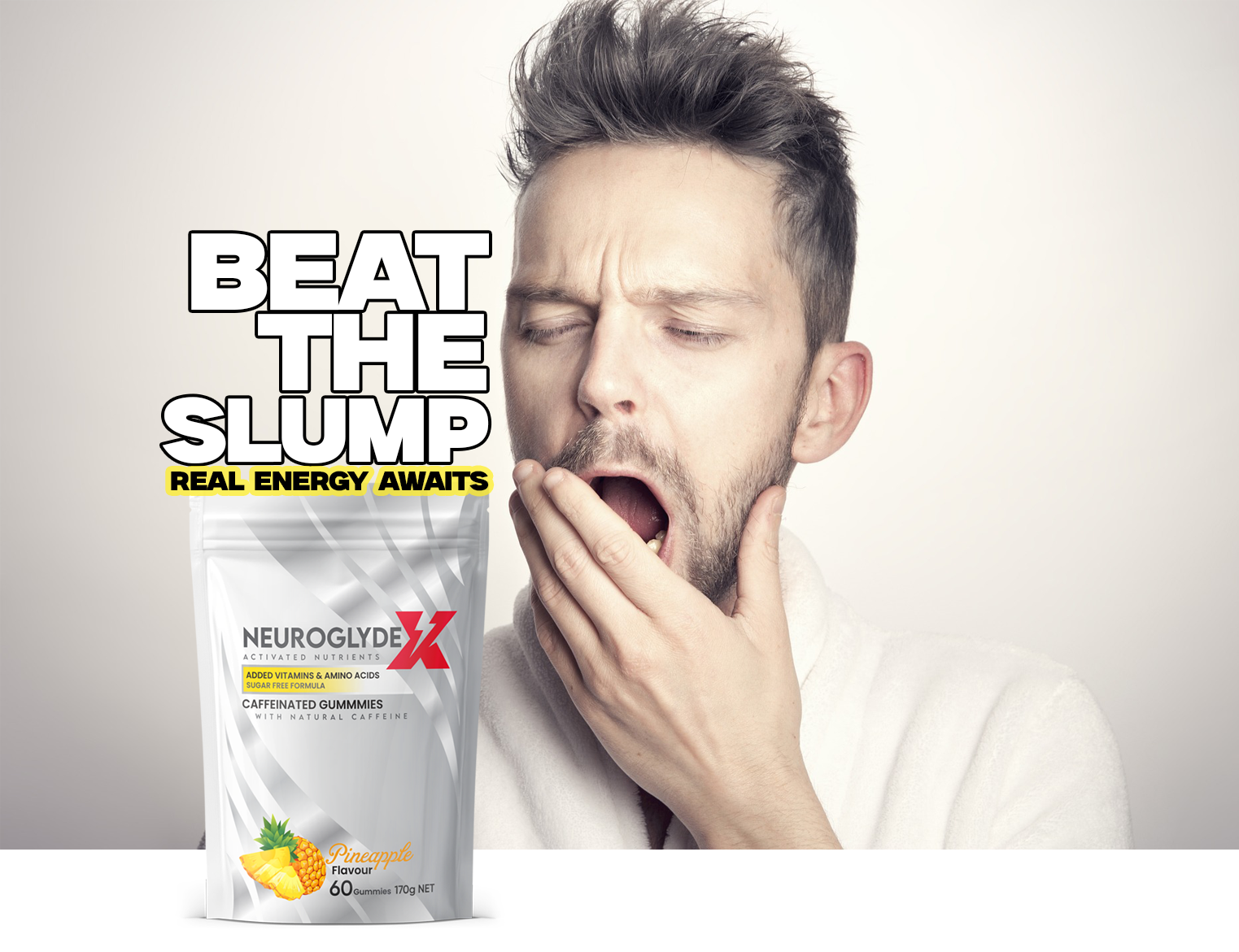 Energy your body can actually use. Neuroglydex delivers natural caffeine alongside activated vitamins and amino acids that support how your body creates and uses energy. Instead of a short-lived spike, you get a steadier supply of fuel that helps reduce that heavy, drained feeling that follows coffee, energy drinks, and sugar.